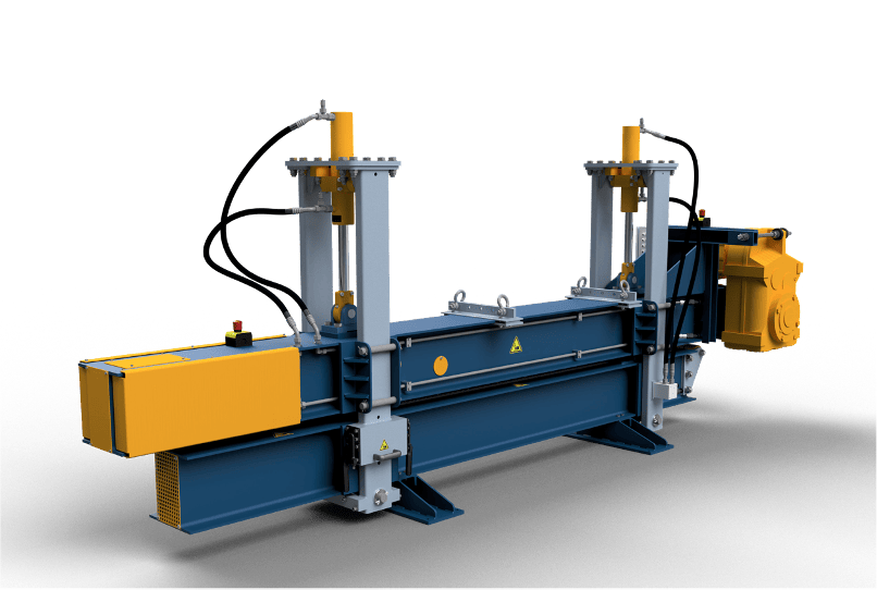 Alternatively the belt clamping frame standing on the ground with mounted wheelsets can be opened scissor-like and moved into the belt conveyor. For this purpose a rail track is to be provided by the customer.